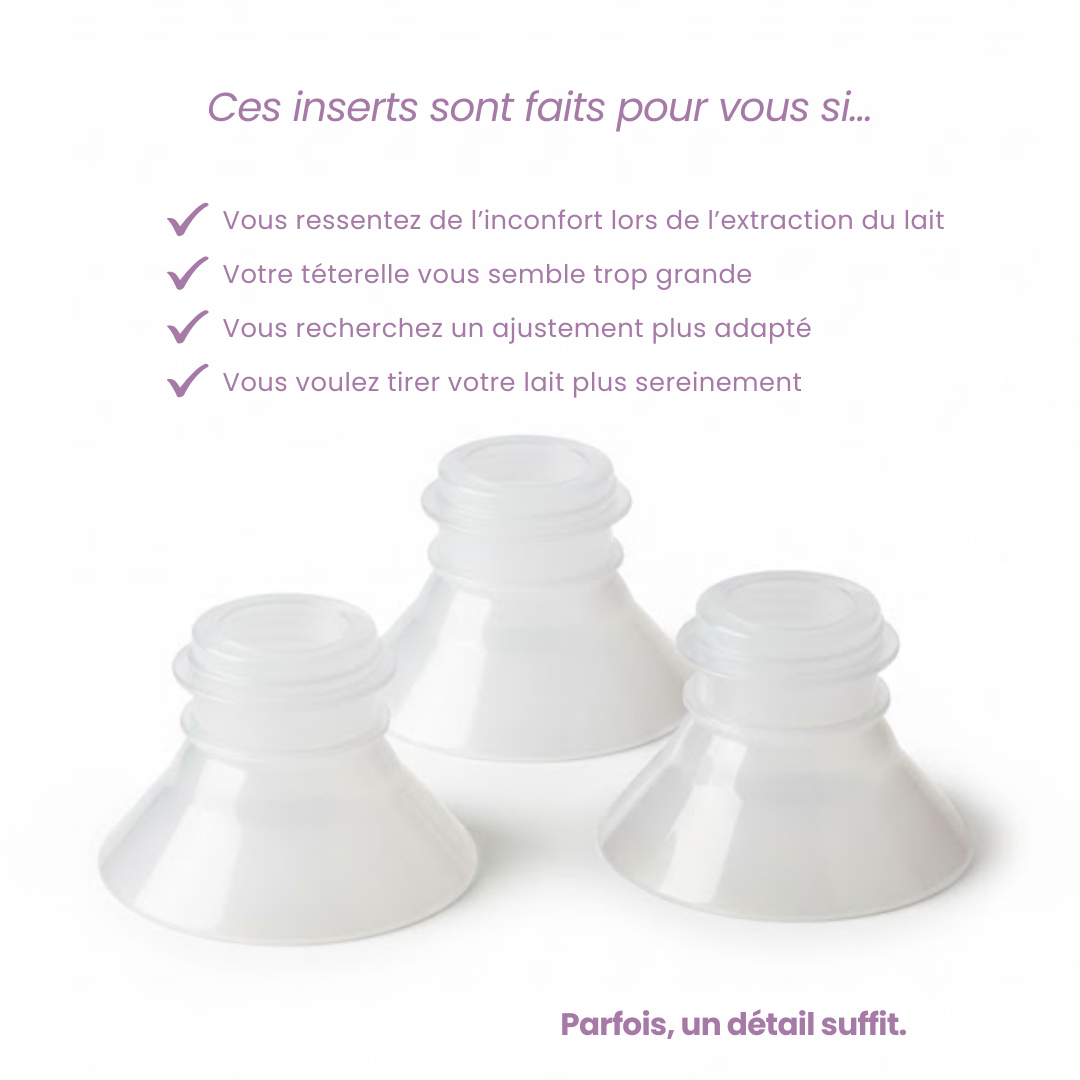 Para amamantar de manera efectiva y sin dolor, ¡el tamaño del inserto del extractor de leche juega un papel crucial! Un inserto bien ajustado ayuda a optimizar la extracción de leche, limitar las molestias y prevenir la irritación del pezón. Un inserto demasiado grande o demasiado pequeño puede dificultar el flujo de leche y causar dolor. Por el contrario, un tamaño adecuado garantiza la máxima comodidad y una extracción más suave y eficiente.