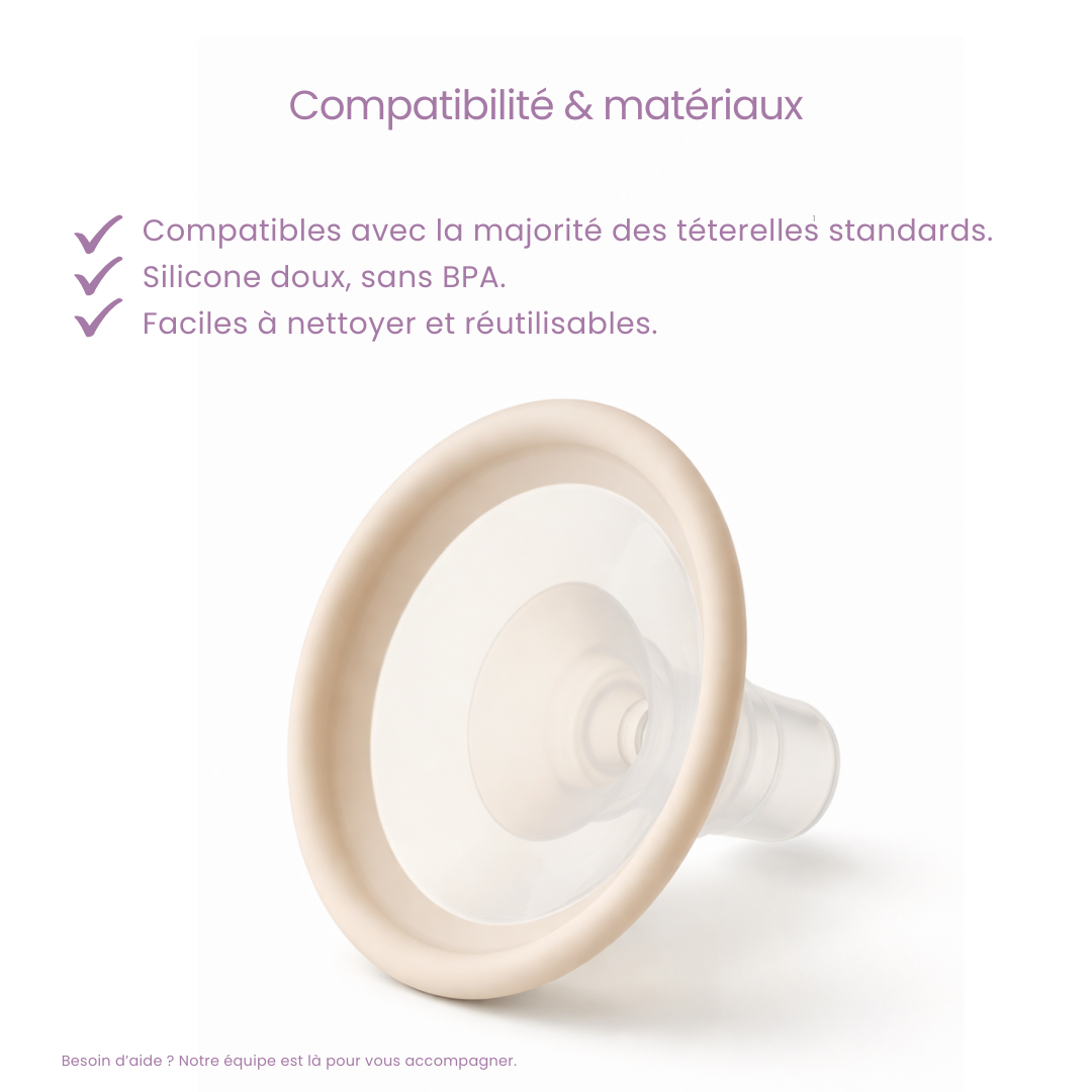 Chaque tire-lait ayant ses spécificités, nous vous recommandons de vérifier la compatibilité avant l’achat.